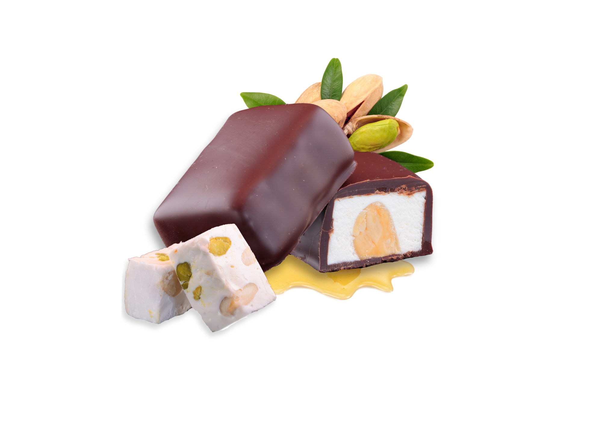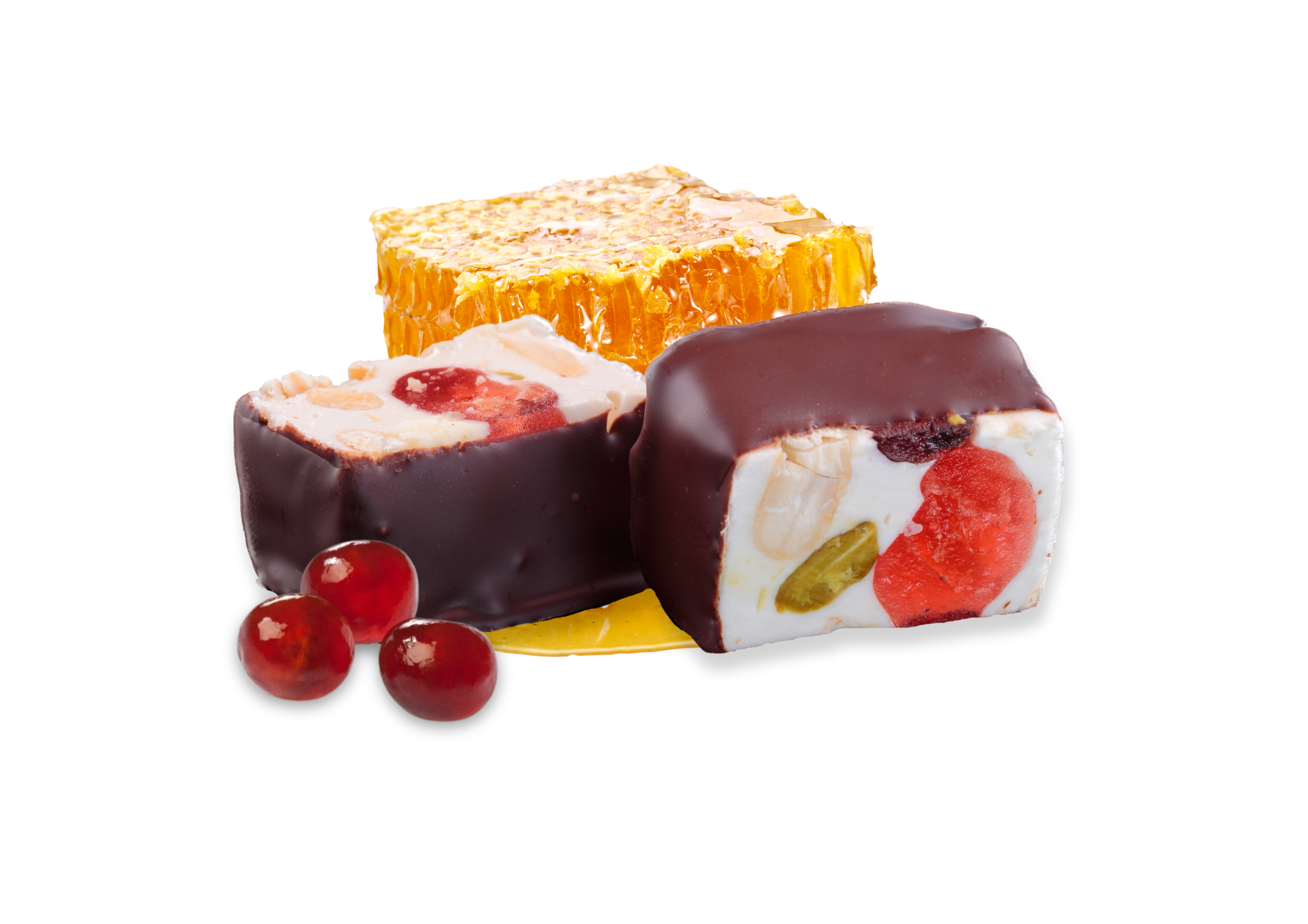 Spécialités NOUGATS : les Dominos printaniers (socle noir) et les Alpins (enrobage noir et lait)