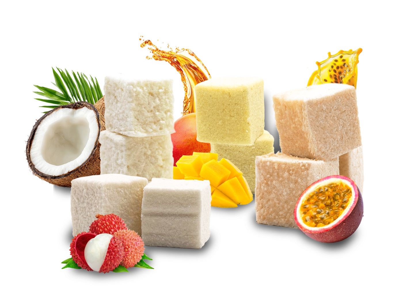 Exotiques : coco, passion, mangue, litchi, banane